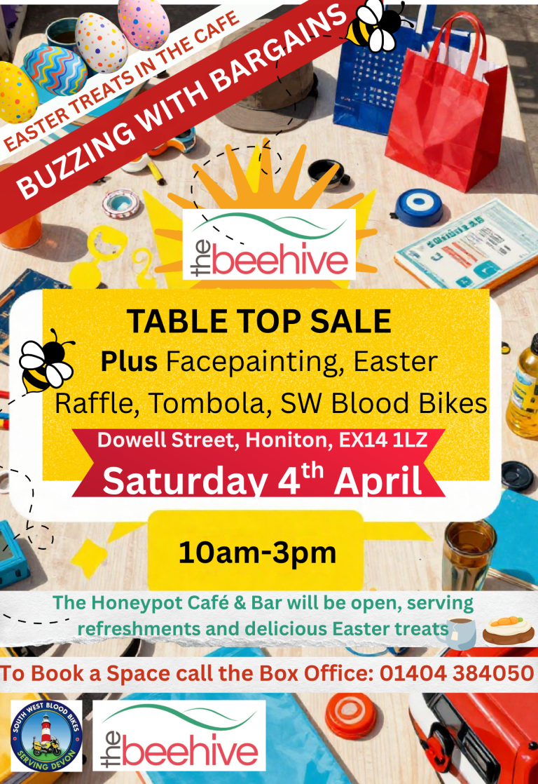Thursday 23rd March at 2 pm – The Beehive, Honiton